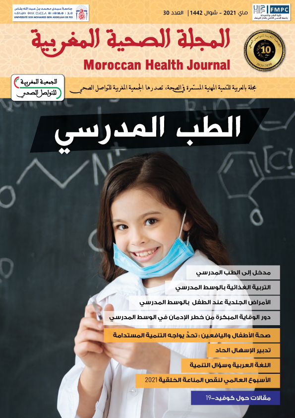 كلمة هيئة التحرير ملف الطب المدرسي مدخل إلى الطب المدرسي نوفل برغوز التربية الغذائية بالوسط المدرسي: الأهمية والمقارباتتاريخ التلقيح إيمان الكوهن التقدير الذاتي والصحة المدرسية وفاء وحيد، الكرعاني محم...
