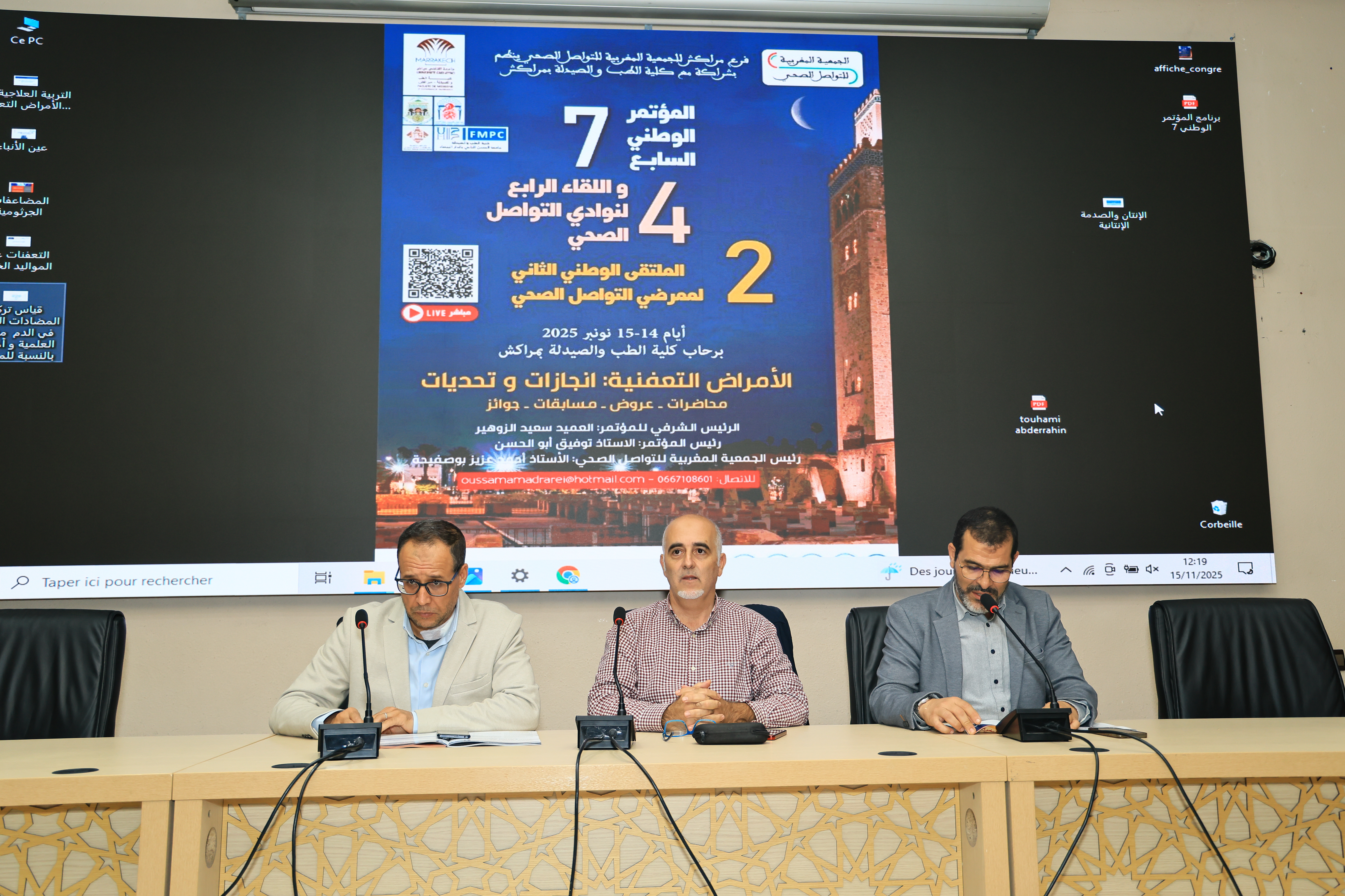 في إطار الدينامية الوطنية التي يشهدها قطاع الصحة بالمغرب، وانسجاما مع التوجيهات الملكية السامية لصاحب الجلالة الملك محمد السادس نصره الله، الهادفة إلى تأهيل المنظومة الصحية، تعميم الحماية الاجتماعية والارتقاء بجودة الخدمات، نظمت الجمعية المغربية للتواصل الصحي وفرعها الجهوي بمراكش، بشراكة مع كلية الطب والصيدلة، المؤتمر الوطني السابع للتواصل الصحي واللقاء الوطني الرابع لنوادي التواصل الصحي، وذلك يومي 14 و15 نونبر 2025 بكلية الطب والصيدلة بمراكش، تحت شعار: «الأمراض التعفنية: إنجازات وتحديات».